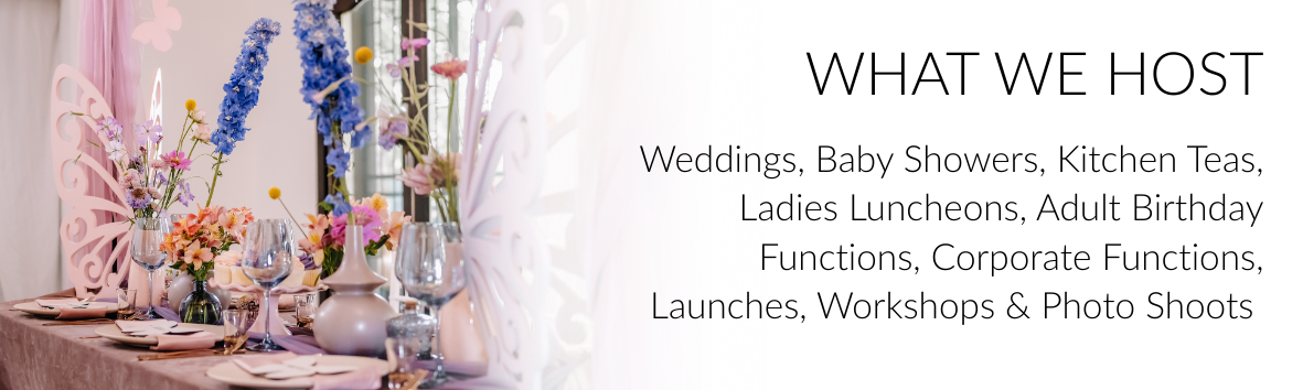 Yes! Our micro venue is also available for birthday parties, baby showers, kitchen teas, engagement dinners, anniversaries, corporate functions, and styled photo shoots.